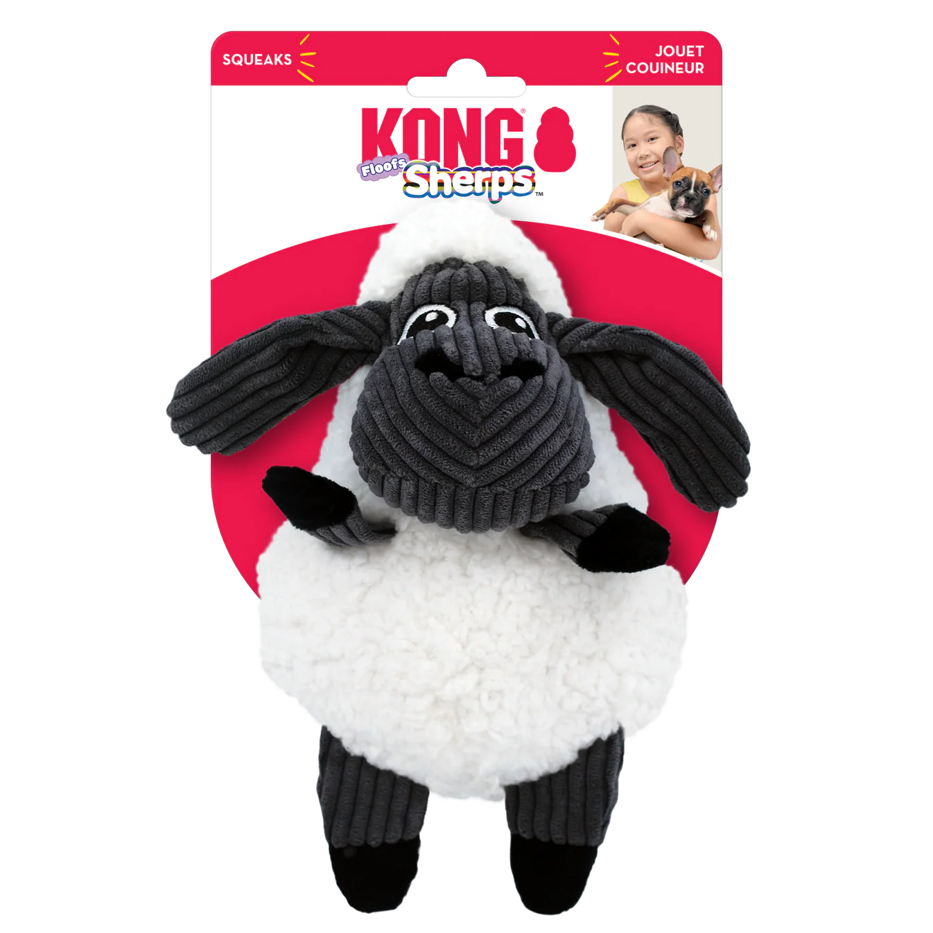 The KONG Sherps Floofs have an uber plush exterior that is irresistibly snuggly for cuddling between gentle games of indoor fetch. The unique flat squeaker in the body provides full on fun with sounds all around. Crackly ears extend and delight dogs making playtime last longer.